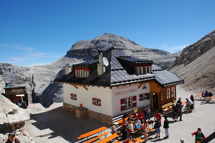 Nedelja, 29. jul 2012. – Uspon na Piz Boe Grupa A: Passo Pordoi 2243mnv- planinarski dom Forcella Pordoi 2.848m-Piz Boe 3144m-nastavlja kružnom stazom Partersass 2750m- planinarski dom Beo 2850m-pl.dom Forcella Pordoi-Pasa Pordoi 2243m. Dužina staze oko 12km, uspon i spuštanje oko 1050m, trajanje pešačenja 7h. Grupa B:Passo Pordoi 2243mnv, jedna od najatraktivnijih i najtežih ferata na Dolomitima. Piz Boe 3144m -nastavlja kružnom stazom Partersass 2750m-planinarski dom Beo 2850m-pl.dom Forcella Pordoi-Pasa Pordoi 2243m. Dužina staze oko 12km, uspon i spuštanje oko 1050m, trajanje pešačenja 7h. Ferata traje 2h.
